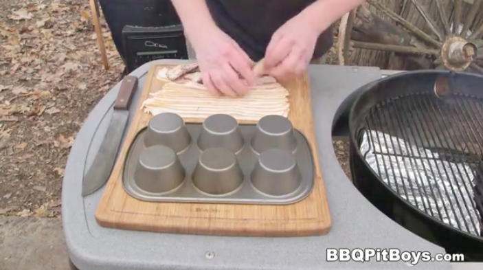 まずは大量のベーコンと、カップケーキの型を用意します。